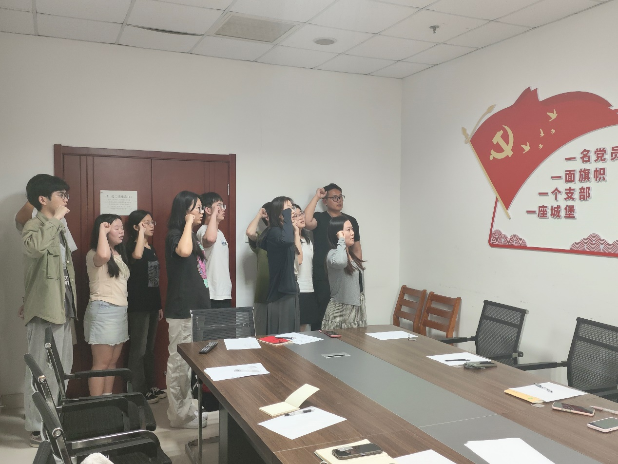 此次活动,王晶晶带领毕业生党员逐一参观画展,形象地阐述了画作中包含的历史背景和真实案例。同时,通过艺术的形式,新颖地使枯燥的条例跃然于眼前,毕业生党员驻足欣赏,深入讨论了每一幅画作所蕴含的深层含义。最后,王晶晶组织毕业生党员面对党旗进行入党宣言,进一步加强共产党的共荣感、责任感和使命感。