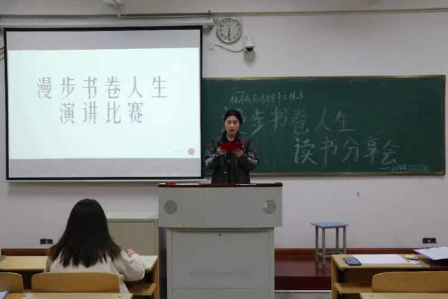 为了弘扬读书文化,倡导同学们养成读书的好习惯,深刻感受读书带来的益处。5月28日晚,机械与材料工程系学生会新闻与传媒部于A101教室举办了“漫步书卷人生”演讲比赛。本次比赛由机械与材料工程系学生会新闻传媒部部长王妍之主持,机械与材料工程系部分同学参加。