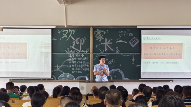 为进一步加深新生家长对学院教育教学管理等工作的了解,加强家校联系,协同育人,9月13日下午,机械与材料工程系于A1阶召开以“携手同心,共育英才”为主题的2024级新生家长会,会议由机械与材料工程系党总支副书记孙科举主持,机械与材料工程系2024级全体新生家长参加。