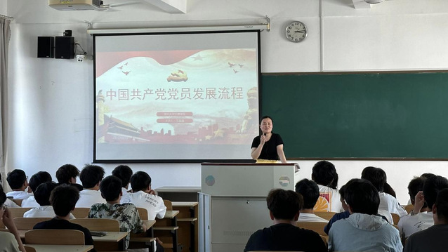 会上,王晶晶首先从中国共产党党员的发展流程、入党的基本条件、撰写入党申请书和支部理论实践活动等方面向新生讲述了入党的相关知识。随后,王晶晶着重介绍了入党程序,阐述了党员发展的流程,在细节上给予新生细致的指导,坚定了新生爱党、信党、入党的信念。最后,她鼓励新生积极主动向优秀党员学习,勇于迎接实践考验。