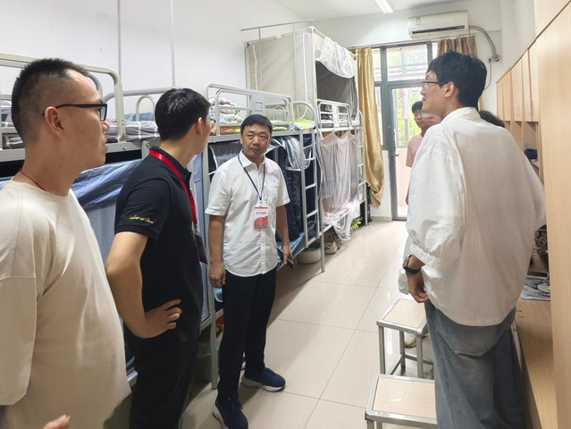 走访过程中,老师们首先关切询问新生是否适应集体生活,细致查看住宿环境,了解生活用品配备、饮食习惯等情况。章诚针对新生普遍关注的问题进行了耐心解答,并建议新生提前了解课程体系、积极参与校园活动;着重强调宿舍安全,叮嘱大家规范用电、保管好个人财物,同时鼓励室友间相互理解、共同营造温馨集体。王晶晶、徐迅则耐心解答新生关于军训安排、社团报名、选课流程等疑问,现场记录新生提出的需求。