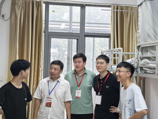 为全面掌握2025 级新生入学情况,及时解决新生生活与新环境适应性问题,9月14日,院长助理章诚、系党总支书记朱骥洪、系党总支副书记孙科举及新生辅导员王晶晶、徐迅,深入新生宿舍与同学们面对面交流。
