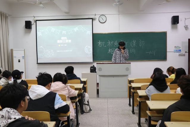 为了让新生了解相机摄影的相关知识,更好地服务活动中的记录与宣传。10月21日,机械与材料工程系新闻传媒班在A102召开摄影培训活动,活动由新闻传媒班副部长张超主持,机械与材料工程系新闻传媒班全体成员参与。