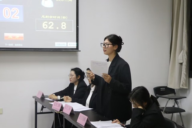 决赛现场,正反双方围绕“二十一世纪的青年做加法幸福还是做减法幸福”展开激烈交锋。比赛开始后,正方一辩开篇立论,明确己方观点。接着,反方四辩质询正方一辩,正反方二辩进行申论。然后,双方三辩相互盘问,两人唇枪舌剑间,每一个提问与回应都充满逻辑交锋。紧接着进入自由辩论环节,双方各执所见,每一次反驳都直击对方观点漏洞,气氛紧张到让人屏息。最后,孙科举对双方赛场上的表现进行总结点评,颁发奖项并合影留念。