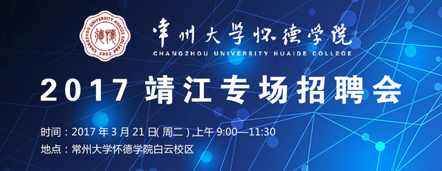 常州大学怀德学院自2014年9月正式迁址靖江办学至今,获得了靖江市政府各单位各部门的关心和支持。为服务地方发展,深化校企合作,促进毕业生与靖江本地企业直面交流,我院特邀请靖江市人社局组织靖江市优质企业赴白云校区举办靖江市专场招聘会。我院2017届共有1440名毕业生,涵盖理、工、文、经、管、艺术等6个学科门类。现将本次招聘会事项安排如下: