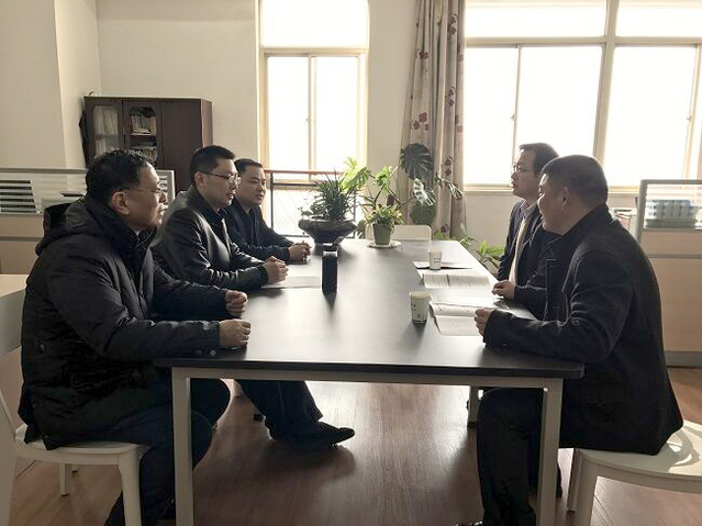 会前,陆恒与靖江人社局相关负责人就毕业生就业问题交流意见。