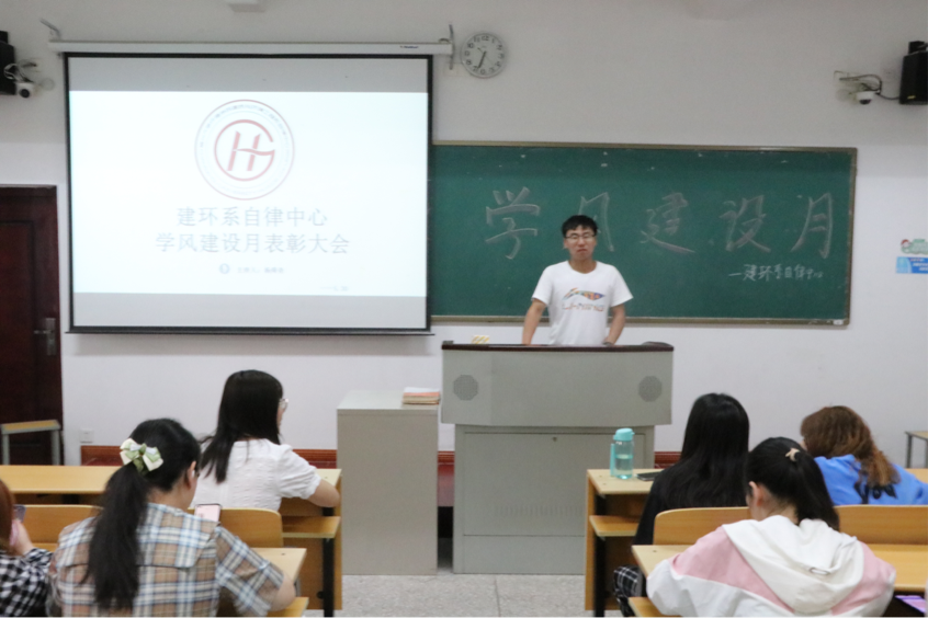 为响应学校学风建设要求,进一步发扬系部学风建设精神。5月31日晚,建筑与环境工程系在A104教室开展学风建设月表彰大会,大会由杨舜尧主持,建环系自律中心指导老师张兴刚、系自律中心全体成员以及获奖班级、宿舍代表参加。