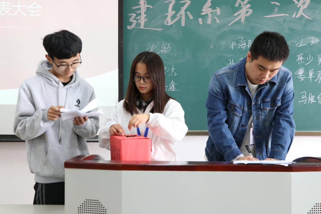 建环系主席团成员杨舜尧主持会议。上届执行主席陆梦娜回顾了一年来我系学生会的工作,总结成绩、指出不足。现任执行主席杜浩鑫提出了今后的工作目标和主要任务。各班候选人进行了自我介绍及现场演讲。大会本着民主、公开、公正的原则采用无记名投票的方式选举出建环系第二次学生代表大会代表13人。