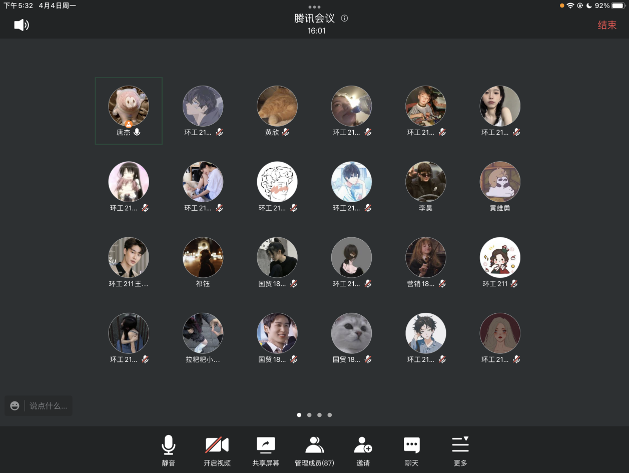 为更好地了解学生在宿舍的身心状况,4月4日下午五点到五点半建环系辅导员利用腾讯会议召开线上班会。