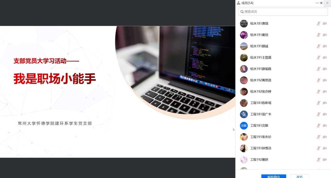 为深入贯彻落实党史学习教育工作部署要求,进一步提高学生党员的工作能力。6月12日,建筑与环境工程系于线上开展“我是职场小能手”大学习活动。本次活动由建环系20级辅导员张兴刚主持,全体学生党员和预备党员参加。