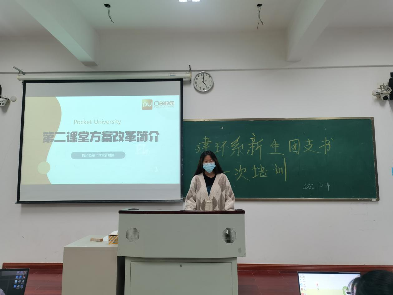 为提高新生团支书工作能力,建筑与环境工程系团委于10月14日晚召开新任团支书工作培训会。团总支副书记杨伟鸿主持会议,团委宣传部部长龚敏佳、组织部部长张世龙及系内新生团支书参加本次培训会。