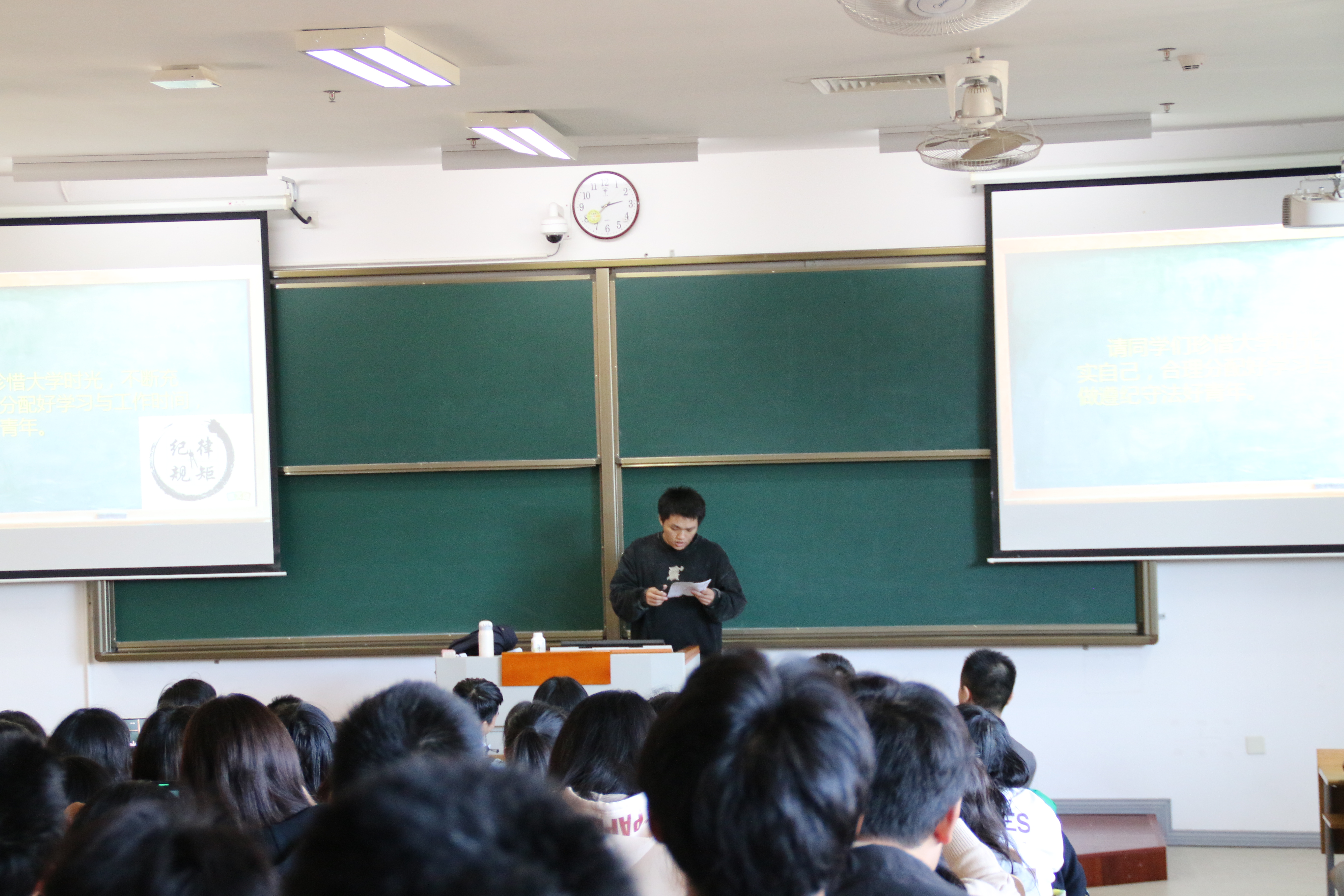 为加强德育教育,使学生牢记校规校纪,养成良好的行为习惯,提高自我约束力,针对学生中出现的不文明现象,建筑与环境工程系于2022年10月21日在A阶梯教室召开“校规校纪”主题班会。