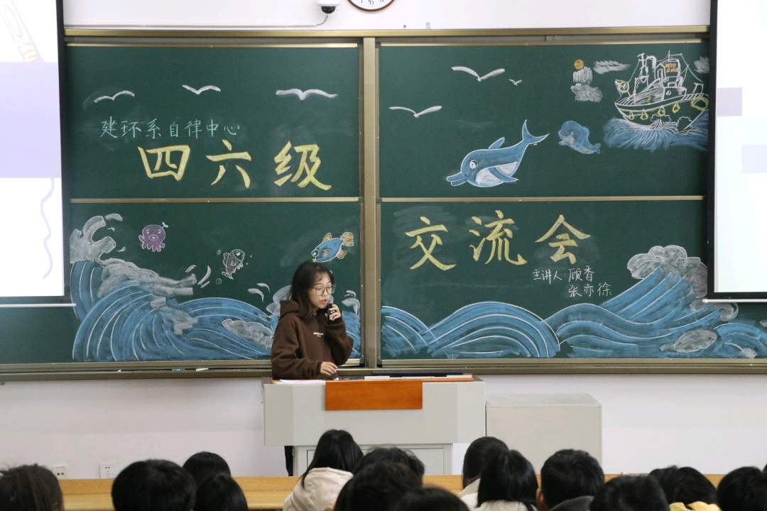 为了帮助同学们更好的为四六级考试做准备,11月19日下午2点,在j101教室,我系成功举办了四六级交流会。邀请到了顾香和张亦徐两位学姐做本次交流会的主讲人,建环系22级同学参加。