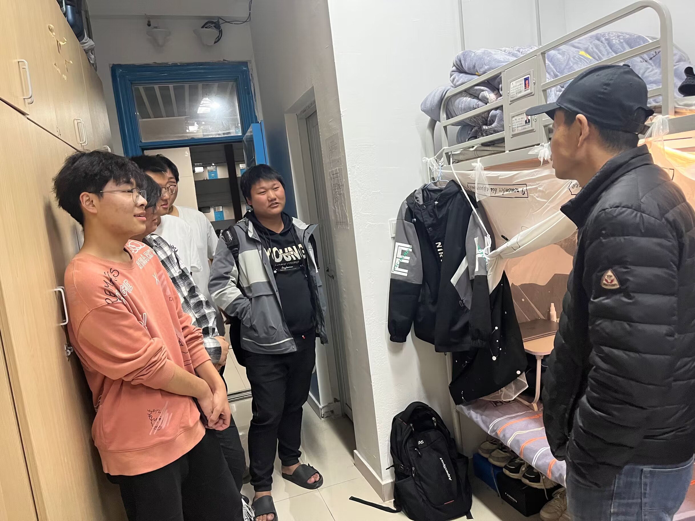 为更好地了解建环系学生在宿舍的身心状态,切实关注学生学习情况和生活需求。于5月8日晚,工程管理专业封金财老师、鞠炼老师到系部学生宿舍开展走访活动。