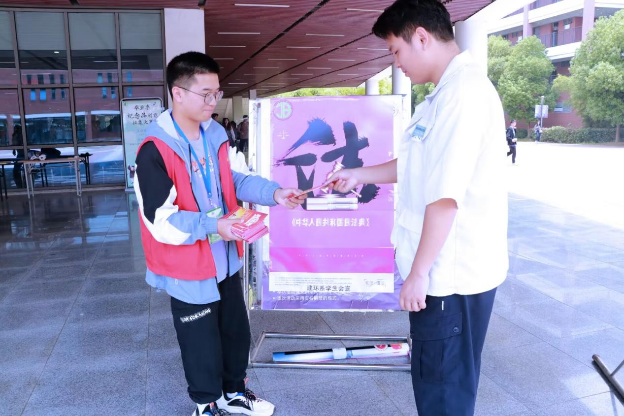 活动中,工作人员通过悬挂横幅、发放《民法典》传单等方式,向同学们宣传民法典的重要意义、立法目的和主要内容,对民法典中与同学们日常生活相关的规定进行了现场释法解惑。