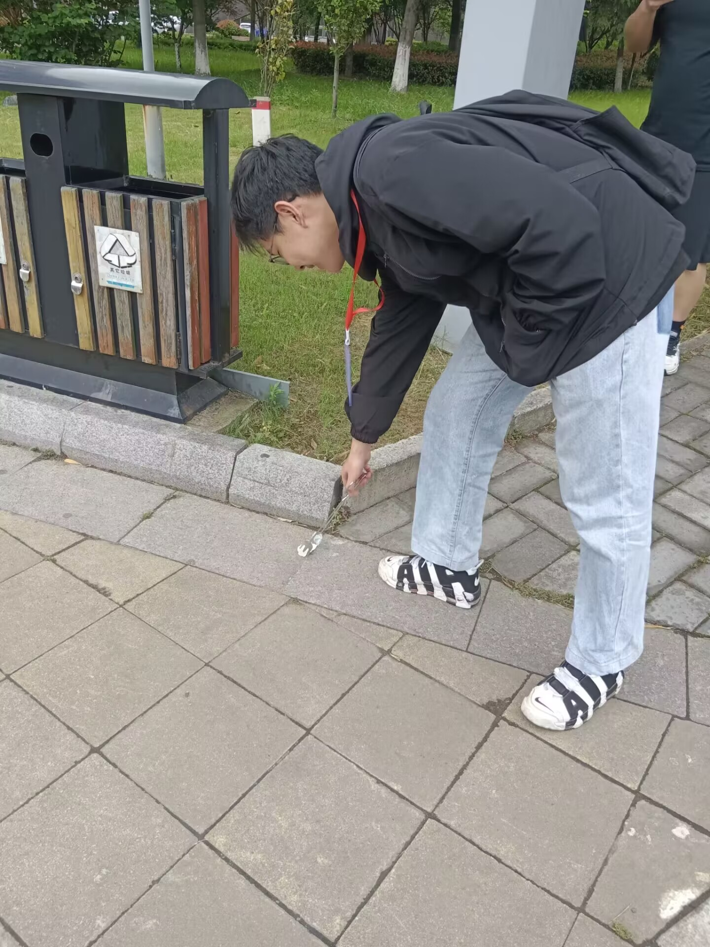 活动中,同学们带上由青协分配的工具,在各个负责人的带领下,“兵分三路”,从二食堂出发,对校园进行垃圾清理工作。期间,志愿者们不怕脏,不怕累,争取不放过每一个死角,努力搜寻散落在校园的垃圾。经过一段时间的清理,大家最终在操场汇合,同学们看着手中的“战利品”,脸上露出了满意的笑容。