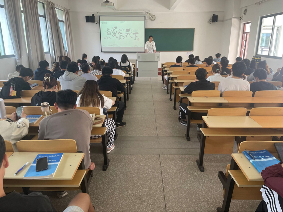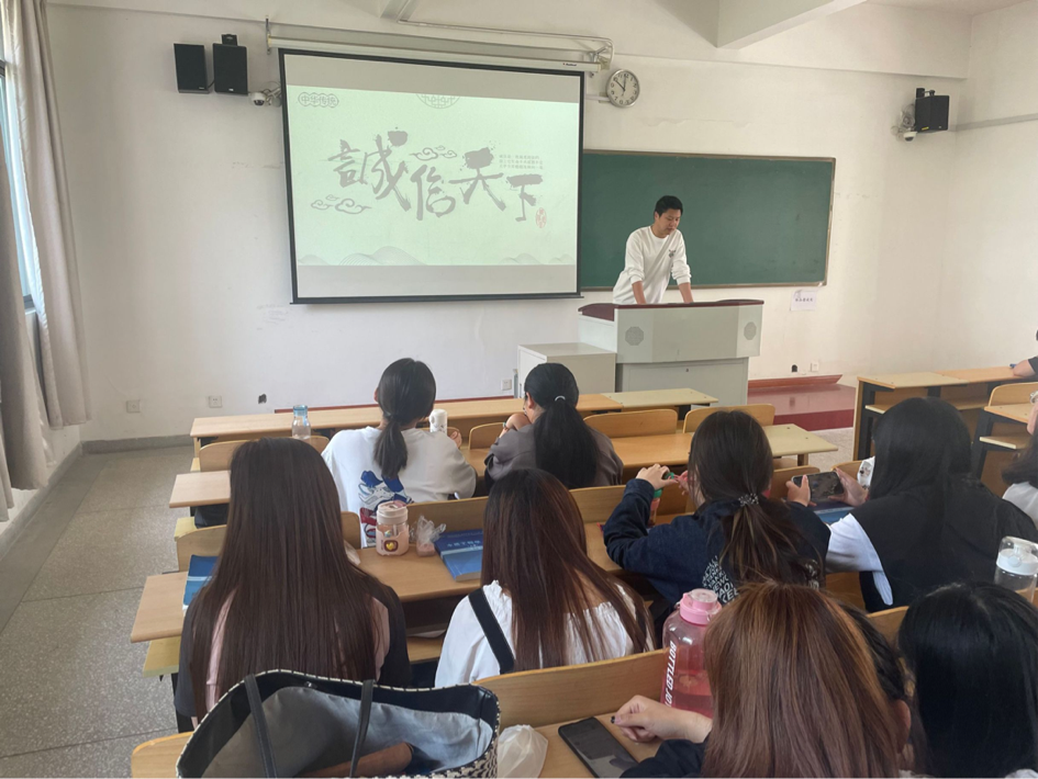 会议开始,辅导员田庄烨围绕“诚信”主题,具体讲解了此次主题班会的主要目的和内容,结合ppt用季布的“一诺千金”事例解释了诚信的含义,通过列举商鞅移木、曾子烹彘等相关故事,进一步阐述诚信的概念及重要性,强调要把正确的诚信认知、自觉的诚信养成与积极的诚信实践紧密结合。
