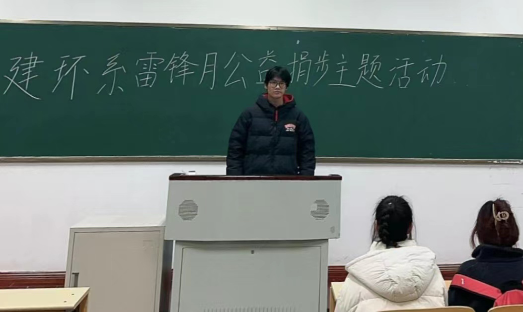 为宣扬雷锋精神,帮助同学们在加强体能锻炼的同时为社会公益贡献力量。3月5日下午,建环系青年志愿者协会于A103教室举办雷锋月“运动青春,与爱同行”公益捐步活动,建环系全体学生参与。