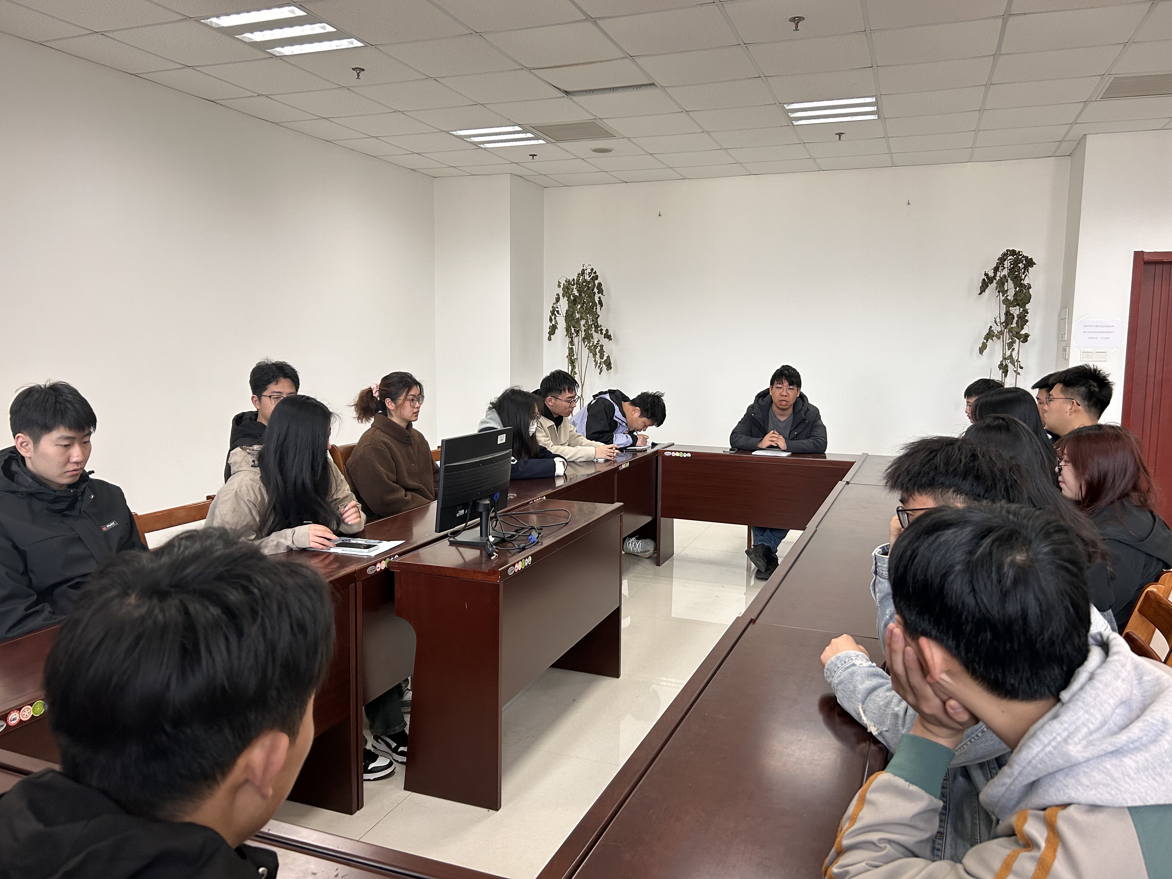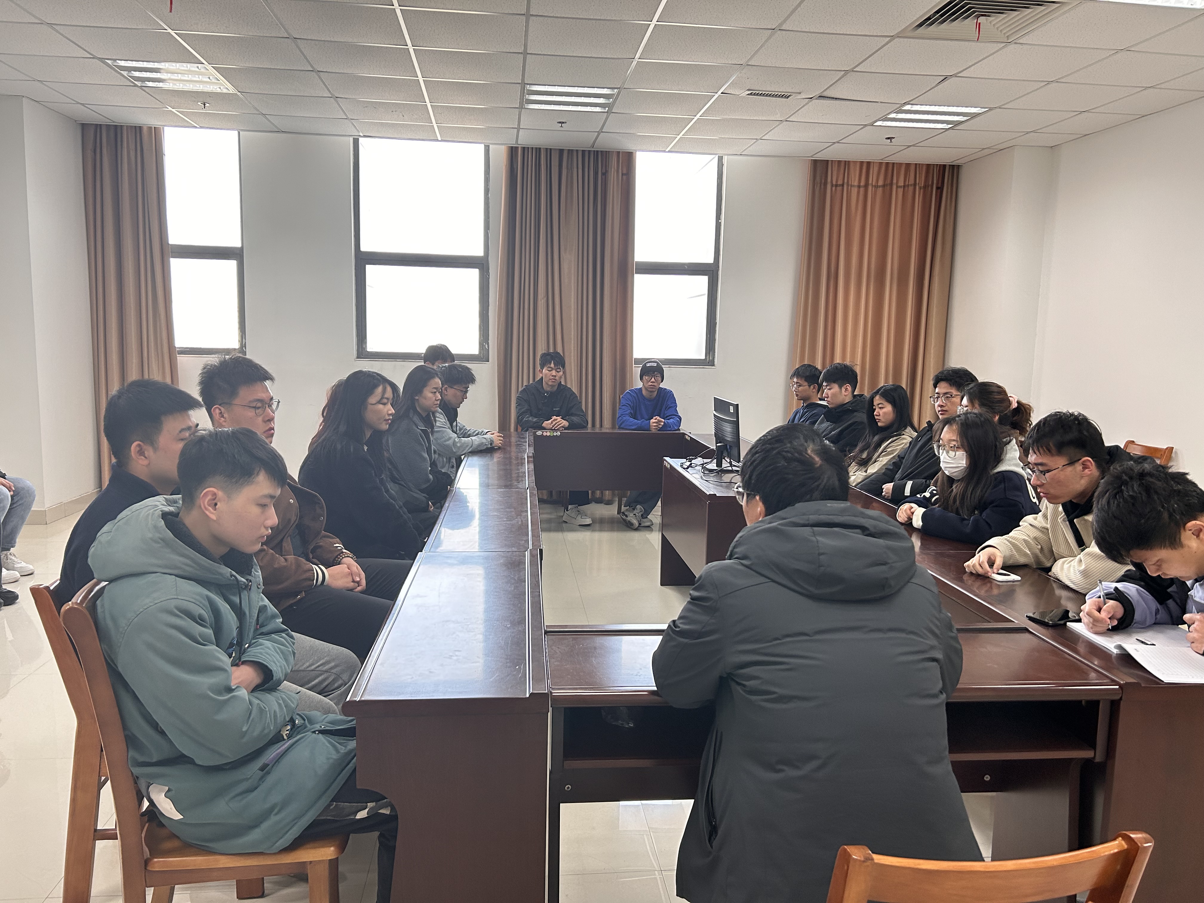 为深入了解2024届毕业生的实际状况,提供有效的帮扶措施,建环系副书记唐杰和20级辅导员田庄烨于3月21日上午在怀德楼1006召开毕业班师生座谈会,各班级主要班委参与。