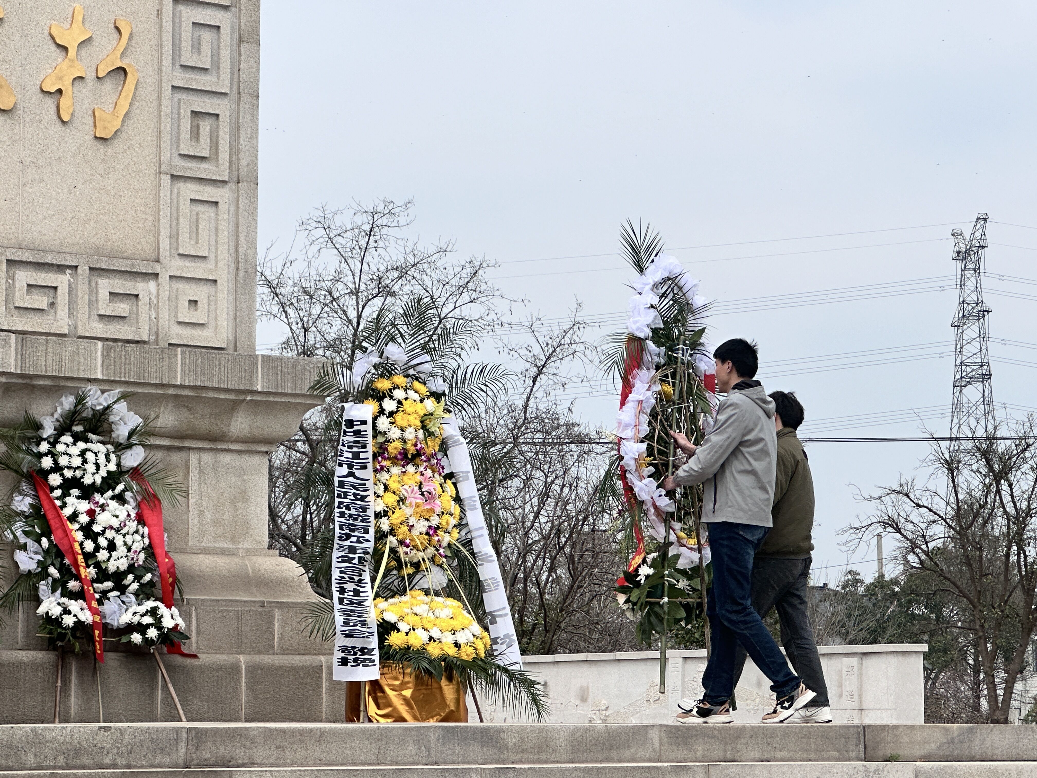 缅怀英烈,以学铸魂。步入基地,首先映入眼帘的便是纪念碑上“革命烈士永垂不朽”这八个金黄大字,庄严而又厚重。全体成员在纪念碑前整齐列队,肃立默哀,表达对革命先烈的深切缅怀和崇高敬意。随后,由学生代表敬献花圈,白色的花瓣在春风中轻轻摇曳,仿佛诉说着后人对先烈的思念与敬仰。