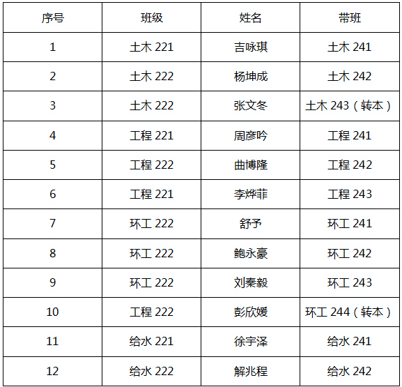 本着竞争上岗、择优录用的原则,经自愿报名、面试等程序、集体评议和研究后,现拟定建环系2024级新生学生班主任名单如下,现予以公示:
