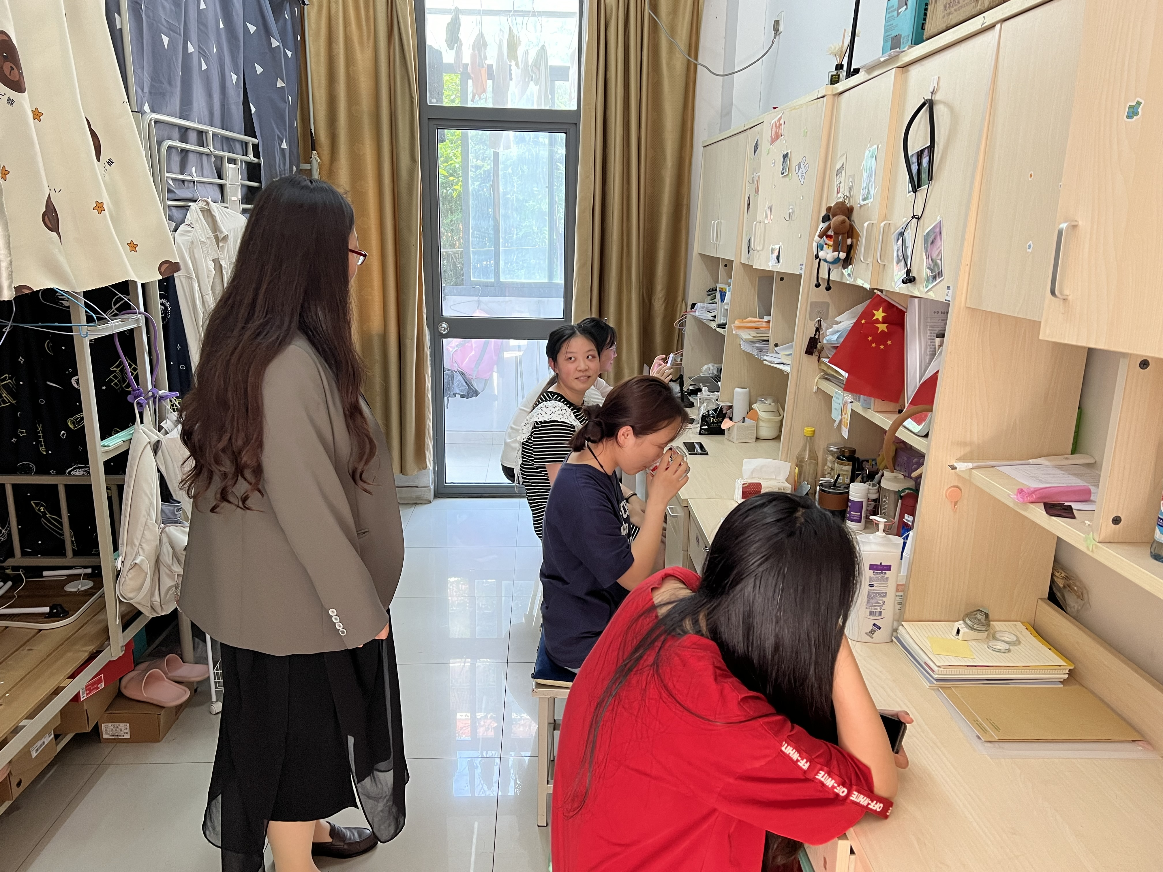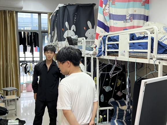 为了解毕业生求职就业情况,进一步做好毕业生离校工作,6月20日下午,建环系党总支书记闫秋羽、副书记唐杰,毕业班辅导员陈珺、田庄烨深入毕业生宿舍进行走访。