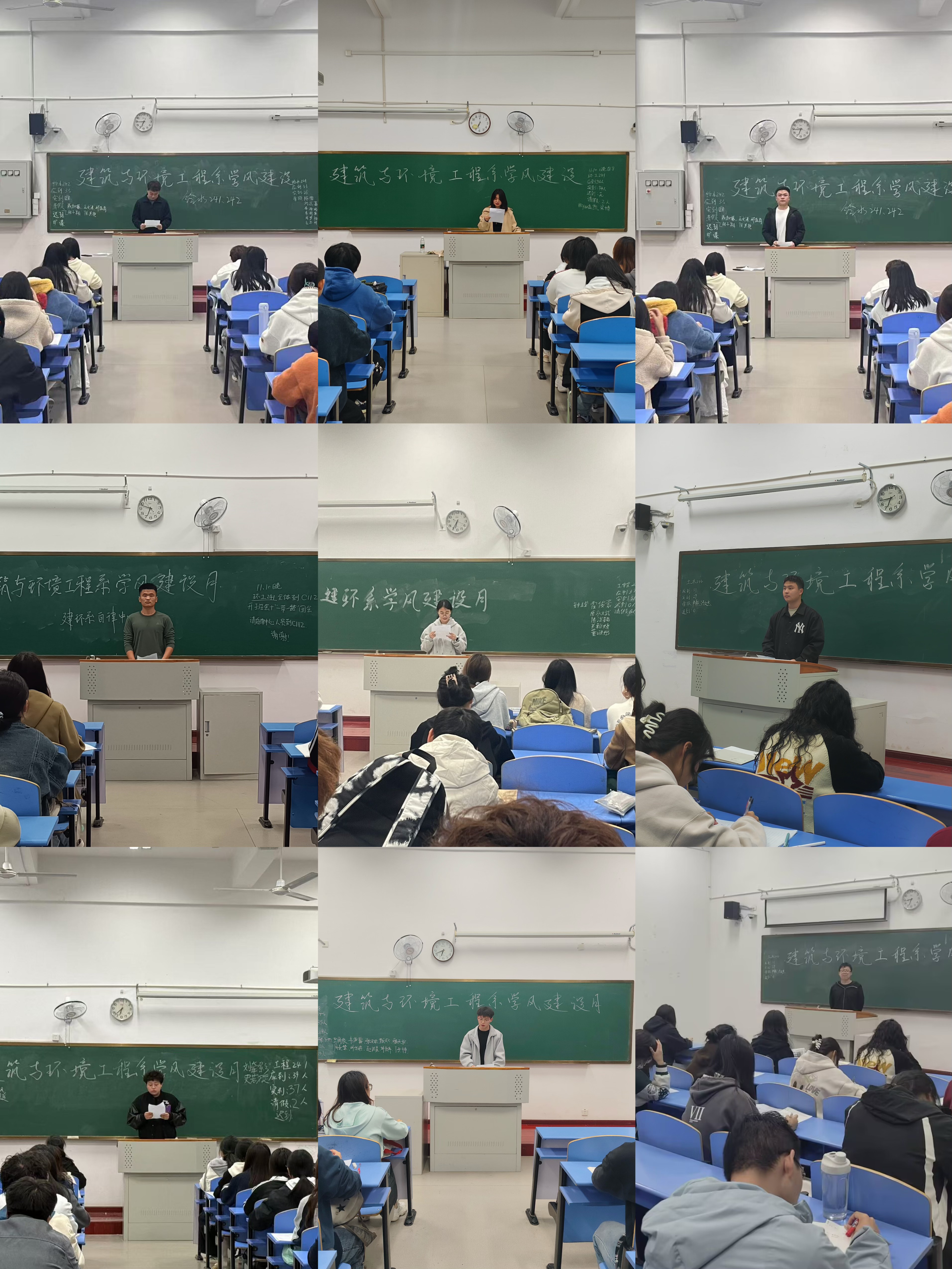 为了进一步加强建环系的学风建设,营造良好的学习氛围。近日,建环系自律中心联合学生党支部在24级自习教室举办学风建设倡议班会。此次活动由自律中心学生骨干、学生党员代表以及24级全体新生参与。