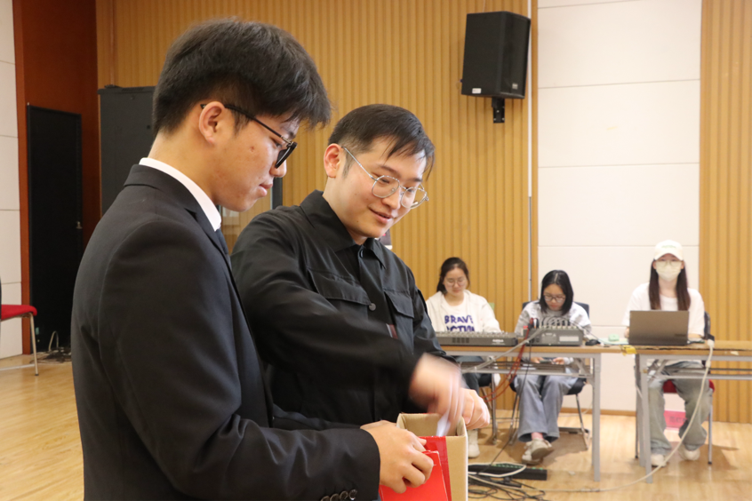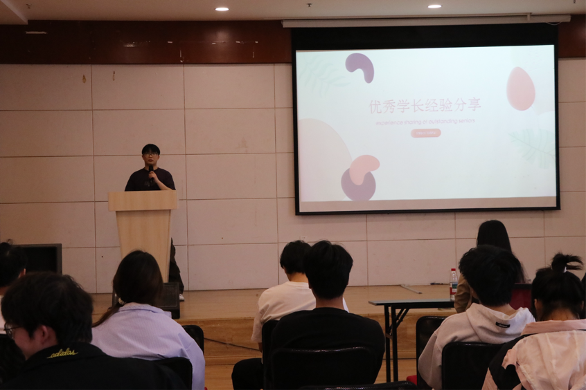 活动伊始,张钰东和李宇欣分别上台抽取一二三等奖作为发放给大四已参与就业分享会学生的福利,公布姓名并分发奖品。随后,邀请谢震洋和李昊作为优秀毕业生代表分享他们申请留学和创业的经验。最后,在场同学自由组队进行互动游戏,现场氛围轻松愉快。
