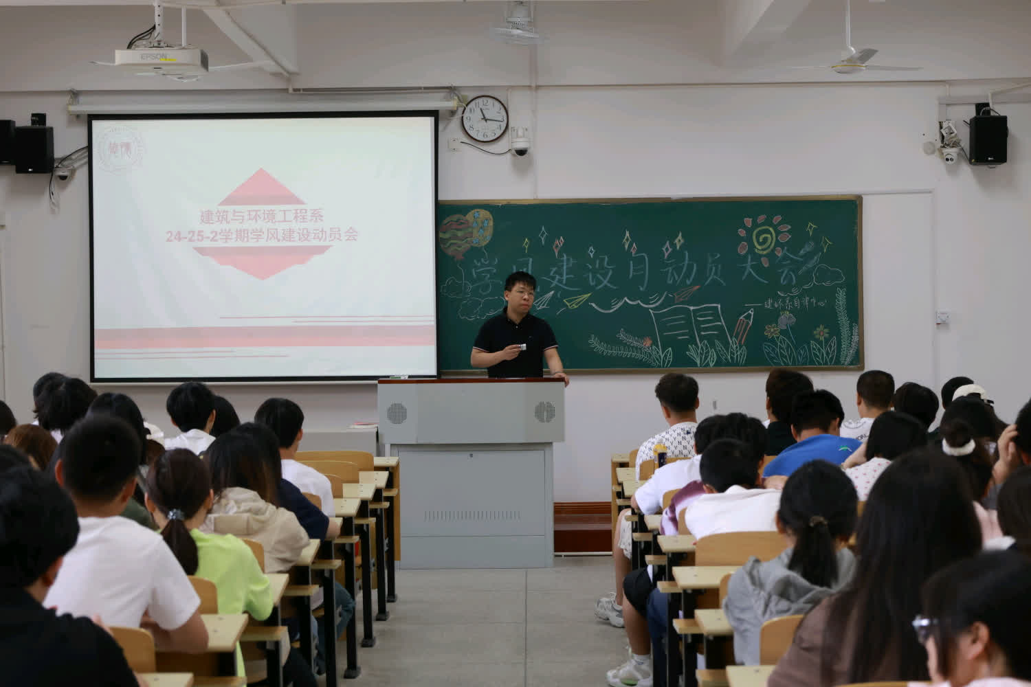 为全面推进学风建设工作,营造优良学风氛围,建环系自律中心于5月13日上午在A101召开学风建设月动员大会。本次大会由建环系自律中心指导老师李宇欣主持,学工副书记唐杰、各年级辅导员应邀出席,各班班长、学委、学生代表及系自律中心骨干成员参加。