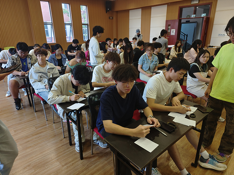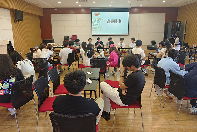 活动以“你画我猜”经典游戏开场,由队尾同学将词语向前传递,经队伍中四人传递至队首破译答案,每个队伍紧锣密鼓地默契配合着,为准确传达信息而努力,现场气氛热烈而融洽,直至限制时间结束,各队完成挑战。随后,活动进入“飞夺泸定桥”户外环节,四名队员共踏一方垫板移动到终点为一轮,另外两名队员踩四块彩砖回到起点为结束,记录各队两轮的用时。各队成员间相互扶持,“语言导航+肢体支撑”克服重重阻碍,团队智慧在方寸间绽放璀璨光芒,展现出团结协作的精神。压轴的“谁是卧底”红色主题版游戏是脑力与表达力的双重较量,各队派一位代表参与,其他成员作为亲友团从旁相助,卧底巧妙隐藏身份,平民谨慎辨别,三轮投票出结果,最终揭晓各位身份,公布阵营输赢。玩家围绕“党徽”“团徽”等词语展开智慧交锋,积极发言,思维碰撞中深化了对红色文化的理解。
