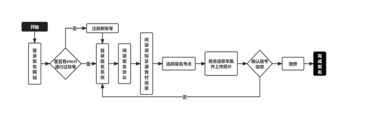 4.网上报名需使用ETEST通行证账号登录,该账号在教育部教育考试院所有使用ETEST通行证的报名系统中通用。若考生已有ETEST通行证,则直接登录报名。若没有该账号,需要先进行账号注册后再进行报名。请使用本人真实有效的邮箱和手机号进行注册。