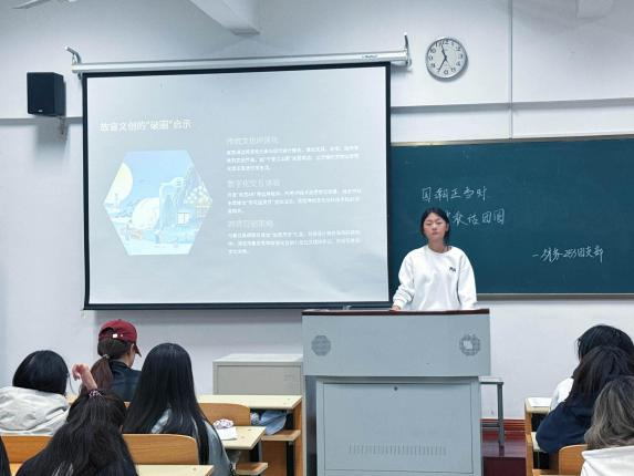 活动伊始,团支书以中秋传统文化为切入点,深入剖析故宫文创破圈案例与国漫文化符号创新,探讨国潮现象背后的文化自信建构逻辑,引领学子以科技为舟,文化为帆,于时代浪潮中勇担文明传承使命,谱写传统新生华章!