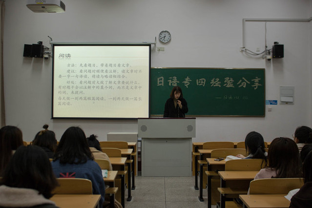 此次经验交流会加深了同学们对专四考试的了解,让同学们受益匪浅,对专四的备考有了明确的方向,增强了本次专四考试的信心。