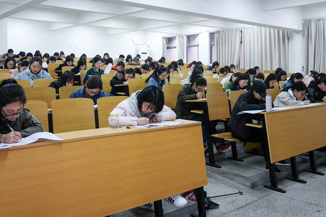 此次模拟考试基本还原真实的英语专业四级考试,这让各位考生深切地体验了专四考试的气氛与过程。考试题型由英语听写、听力理解、语言知识、完形填空、阅读理解和基础写作六部分构成,分值为100分,考试时间为130分钟。正式开考前,各位考生严格遵守考试的规定,提前十五分钟到达考场。在考试过程中,考生们都以认真仔细的状态答题,做到了沉着冷静。
