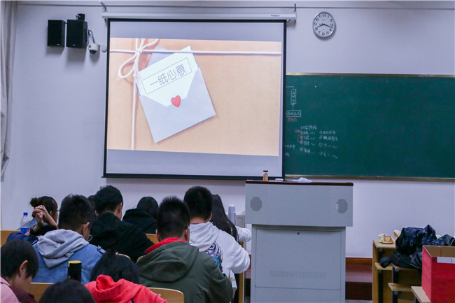 为增强心理健康教育的针对性和实效性,培养学生良好的心理素养及健全人格,促进学生思想道德素质、科学文化素质和身心健康素质协调发展。我系心理辅导站于10月25日晚在自习教室举办“一纸心意”活动,活动由站长李青秀和各班心理委员组织,全体18级学生参加。