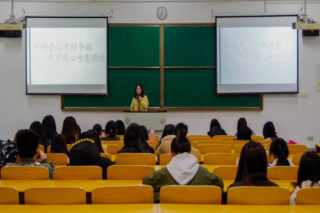 为帮助同学们更好地认知自我,养成良好的心理素质。12月20日晚,外语系心理辅导站于B3阶举办了冬日暖心电影放送活动。
