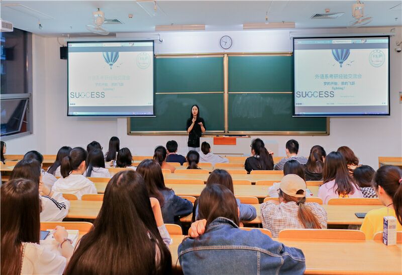 为更好地帮助学生明确考研目标,了解考研信息。 2019年5月14日晚,外语系于J104开展了考研经验交流会。本次交流会由2015级考研学生代表作经验分享,2016级学生参加。