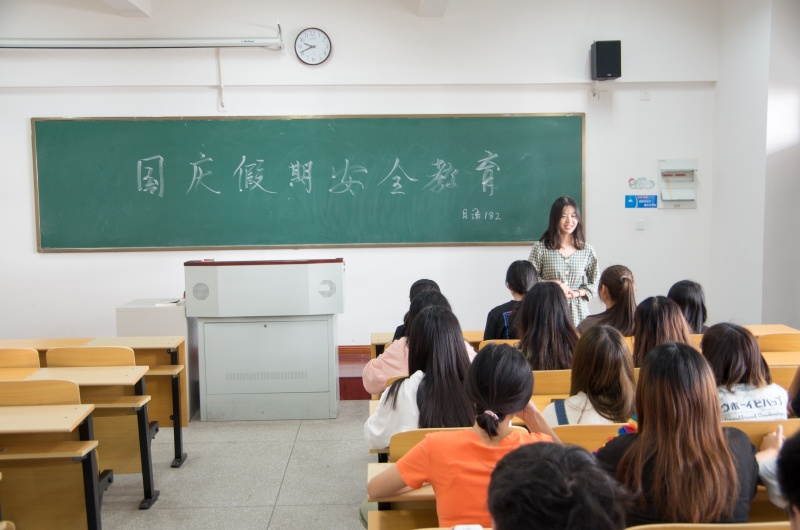 为普及安全教育知识,增强危机防范意识,外语系各班于国庆节前夕召开了假期安全教育主题班会。