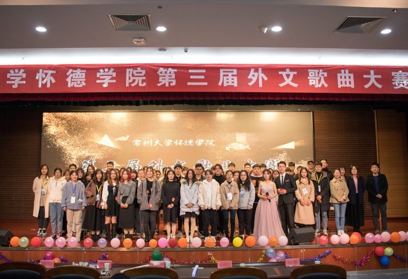 11月27日晚,由常州大学怀德学院团委主办,外语系团总支承办的第三届“心飞扬,乐飞young”外文歌曲大赛决赛于怀德楼报告厅正式开赛。常州大学怀德学院团委副书记朱骥洪、外语系党总支副书记尹晓娟、外语系教师金婕煜、马蕾、凌辰等担任评委。