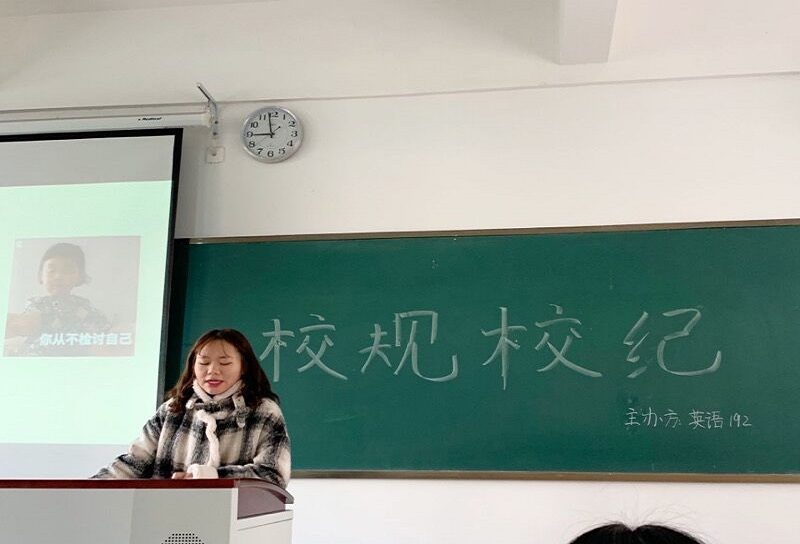 为规范学生行为,维护校园形象,外语系在学风建设月活动期间顺利开展“校规校纪”主题班会活动。本次活动由各年级、各班级学生骨干主持,外语系全体学生参加。