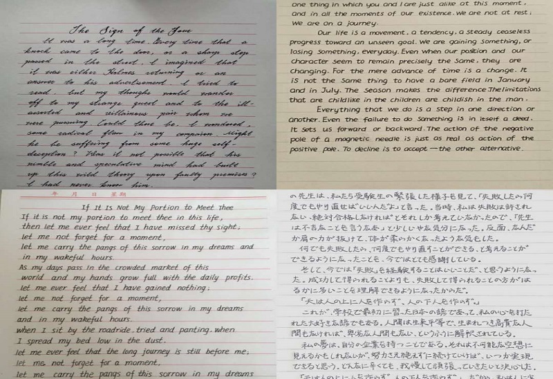 大赛意在激发同学们对硬笔书写的兴趣,和对异国字体规范书写的认识。此次比赛共计69名学生参加,书写语种一律为外文,参赛字体涵盖标准体、衡水体、圆体字等。经过初选和线上投票等环节,最终高分子192班纪楸颖和土木182班冯雨潼并获一等奖。(通讯员/刘婧娴)