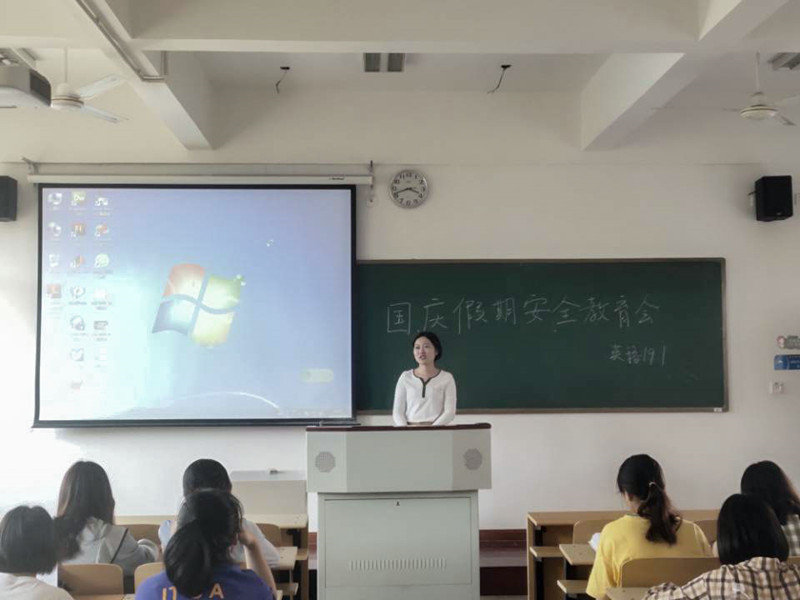 国庆“小长假”即将到来,为了保障同学们的人身安全,让同学们度过一个平安快乐的假期,9月24日下午,外语系开展了“国庆安全教育主题班会”,外语系党总支副书记尹晓娟主持会议。