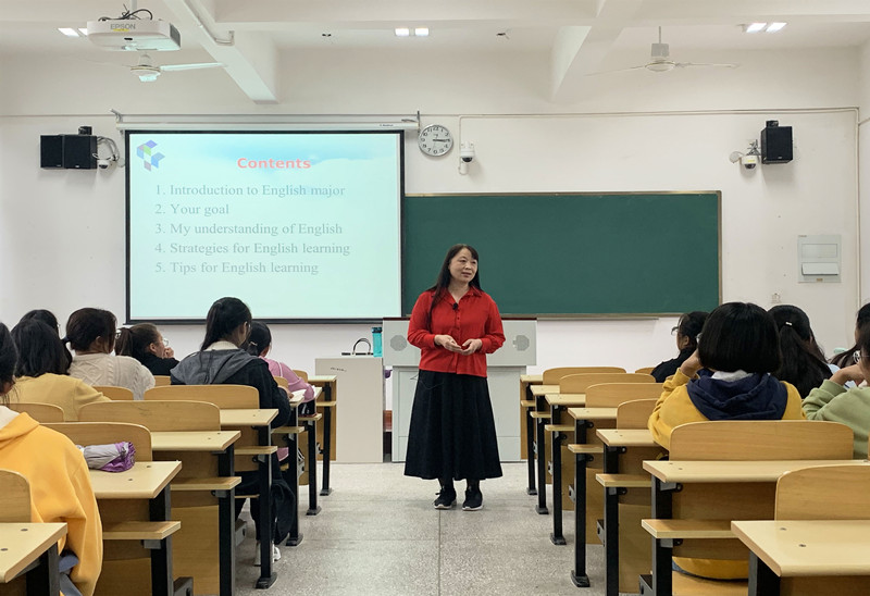 张春芳为同学们讲解了英语课程设置、专业发展方向、20级人才培养方案等内容,倡导同学们根据自身特点和社会需要确定学业路线、制定发展规划,强调应养成良好的学习习惯和思维方式,提升专业能力,积极参加学科竞赛,通过读书丰富心灵,成为一个认真勤勉、乐观开朗、道德优良的合格大学生。