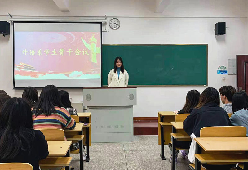 为有效开展新学期学生工作,进一步提升学生骨干的积极性,3月25日下午,外语系于A108召开学生会骨干会议。会议由外语系团总支书记刘婧娴主持,全体学生骨干参与。