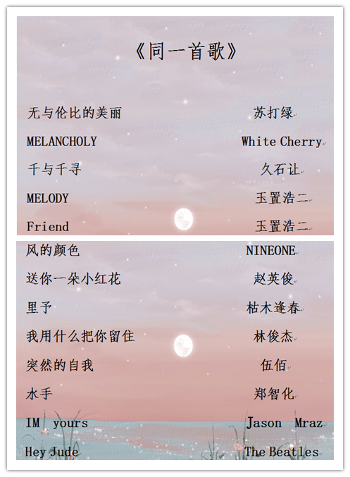 活动通过线上作品推荐的方式,征集在旋律上优美动听,内容上积极乐观的歌曲,切实给予人慰藉与温暖。经过投票筛选,最终选出20份作品面向全体同学公开分享。此次活动旨在帮助同学们意识到人与周围环境千丝万缕的联系,感受人类命运共同体与家国情怀。同时丰富了课余生活,引导同学们乐观积极地面对挑战。(通讯员/刘婧娴)