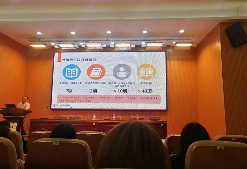 会上,尹延安对常州大学外国语学院特色学科、师资队伍、科研情况、语言服务等方面进行了详细介绍;薛勇对研究生招生初试科目考试大纲作进一步讲解说明,呼吁将外国语考研与创新创业、MTI建设相结合。最后,大三年级辅导员老师刘婧娴作总结发言,建议同学们应结合自身实际情况选择学校,脚踏实地,积极备考。