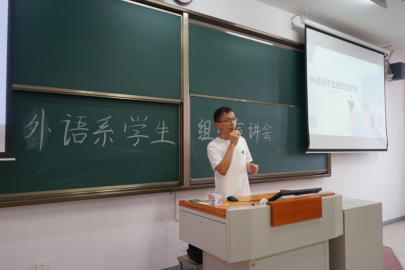 为帮助2023级新生了解系部学生组织,9月20日晚,外语系于J304开展团学组织介绍会。外语系团总支书记高辉、团学各部门主席团成员及2023级全体新生参加了此次活动,活动由外语系学生会主席王文娟主持。