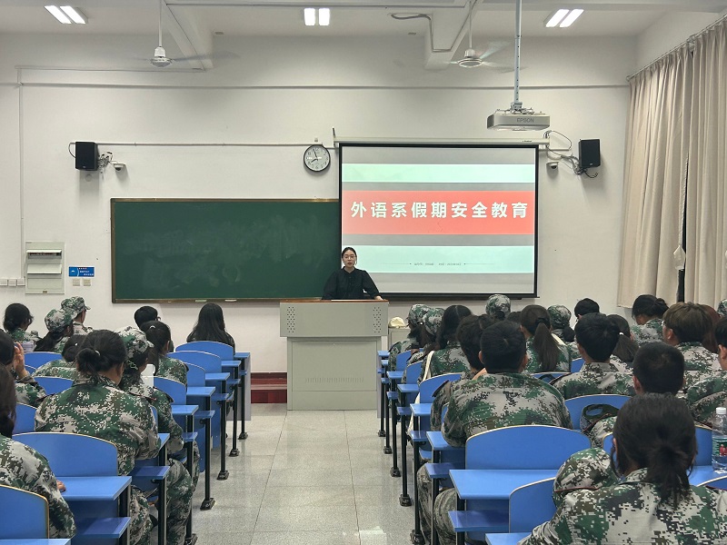为增强学生的安全防范意识,提高安全防范能力,全力保障学生度过一个安全、愉快、充实的假期,9月下旬,外语系开展假期安全教育主题班会,本次班会由各年级辅导员主持,全体学生参加。
