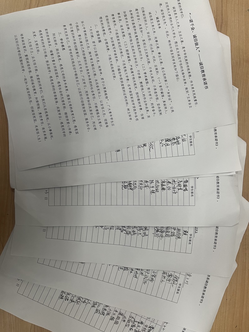 活动中,辅导员首先阐述了学院的资助政策和资助工作办法。围绕“一诺千金,诚信做人”这一主题,从诚信为本、自信自强、学会感恩三个方面出发,引导学生养成诚实守信、勤俭节约的生活习惯,做到言行诚信、学术诚信、经济诚信。此外,还向大家讲解了近期发生的真实电信诈骗案例,告诫大家要理性消费,谨防诈骗。活动后,各班级同学签署了诚信承诺书,表示会将诚信观念融入日常学习生活。