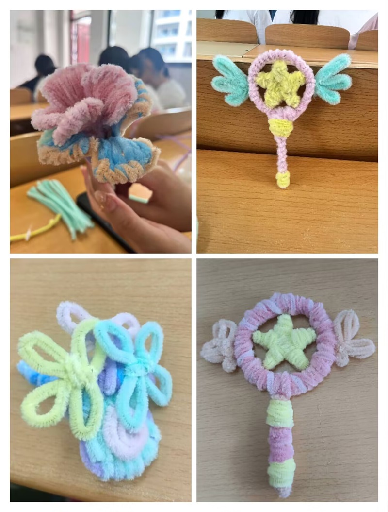 在本次活动共有5支队伍参加,分别为“海冰集团队”、“海盆必in队”、“少年先疯队”、“顺利队”和“旺仔小manttle”队。同学们积极地参与到扭扭棒的制作过程中,在奇思妙想下,五彩斑斓的扭扭棒变成了一件件独一无二的艺术品。创作过程中充满了欢声笑语,大家相互交流制作创意和经验技巧,互帮互助。